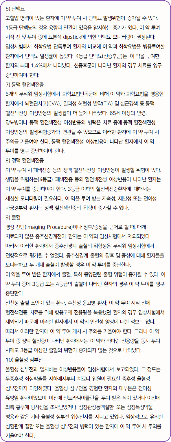 아바스틴 효과 및 효능은 다음과 같습니다.