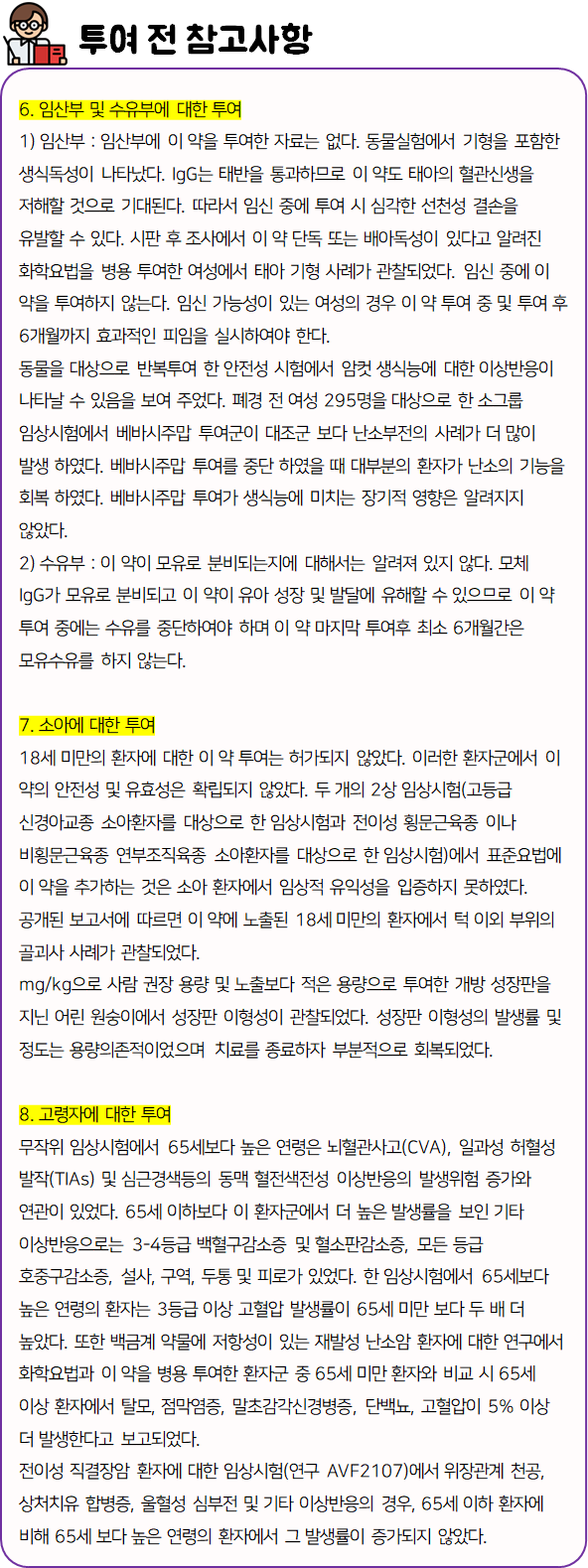 - 다음과 같은 사람들은 의약품 투여 전 참고하시길 바랍니다.