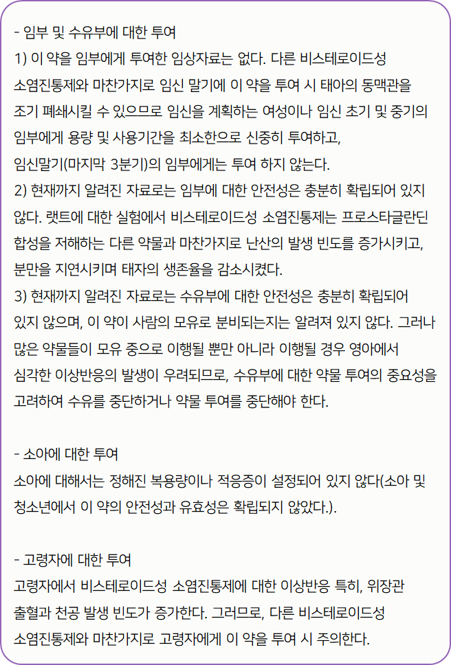 이 의약품은 염증을 완화시키고, 통증을 해소하는 약이니 참고하시길 바랍니다.