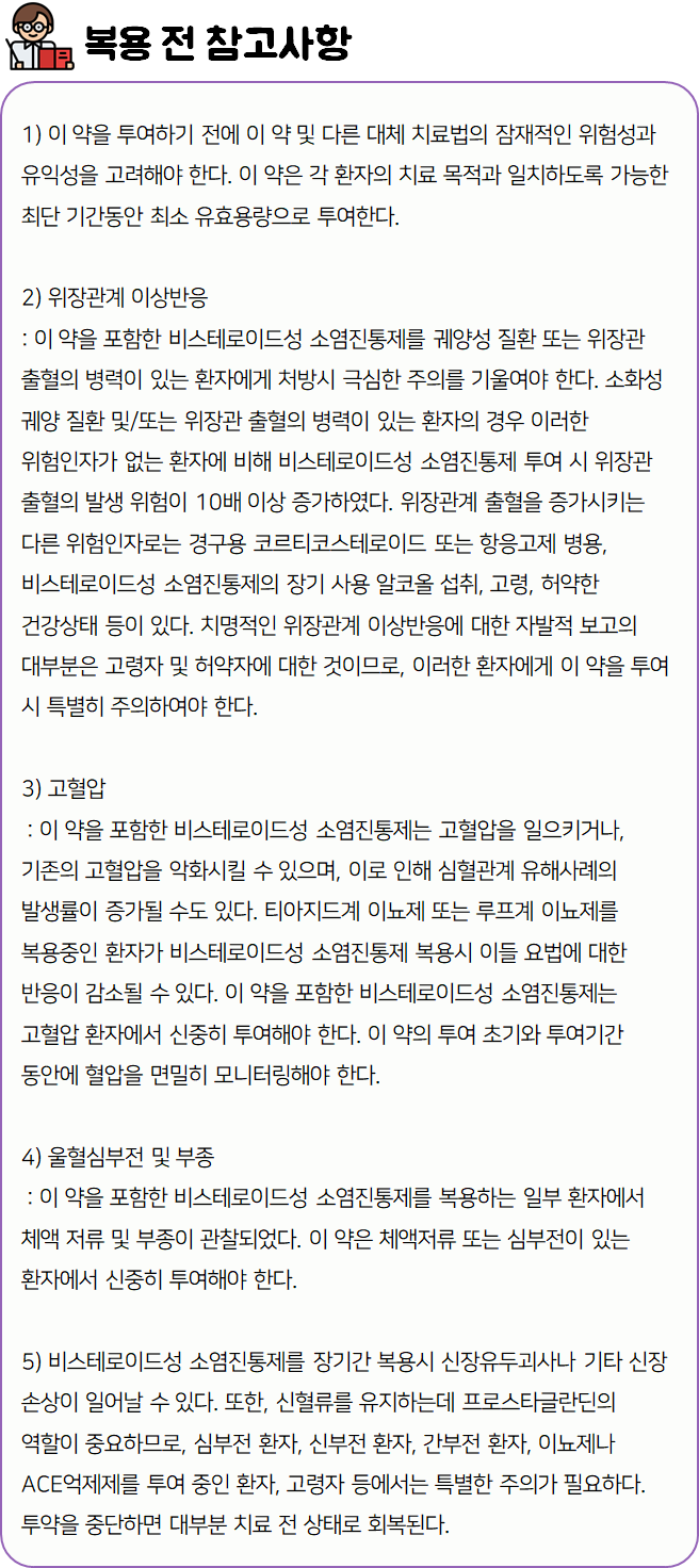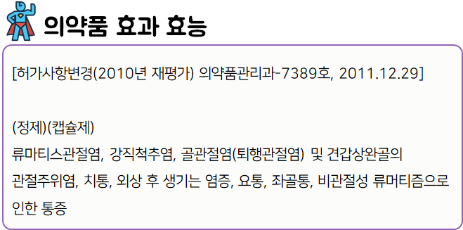 이 의약품은 염증을 완화시키고, 통증을 해소하는 약이니 참고하시길 바랍니다.