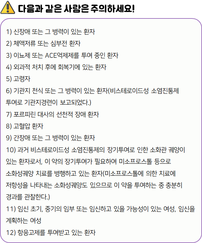 - 다음과 같은 사람들은 의약품 복용 전 참고하시기 바랍니다.