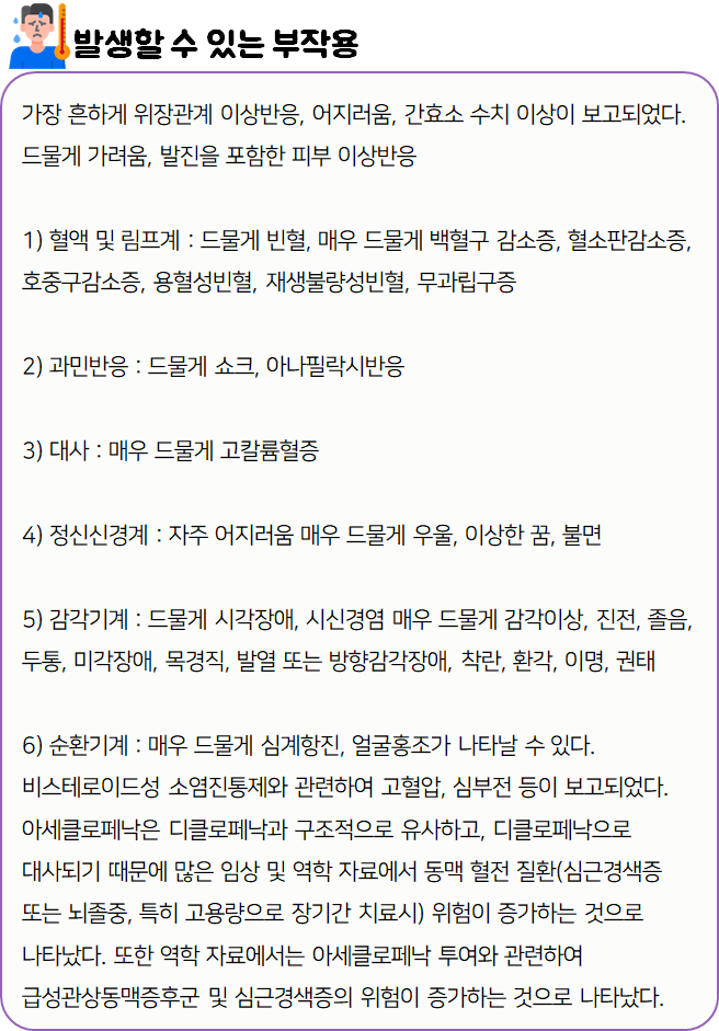 아섹정을(를) 복용할 시 다음과 같은 부작용이 발생할 수 있으니 주의하시길 바랍니다.