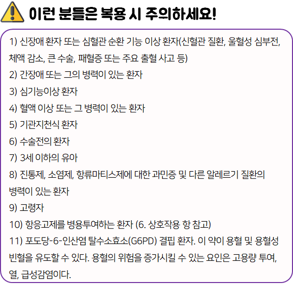 - 다음과 같은 사람들은 의약품 복용 전 참고하시길 바랍니다.