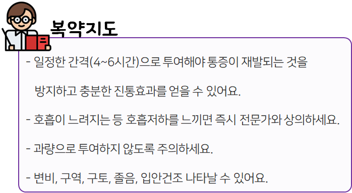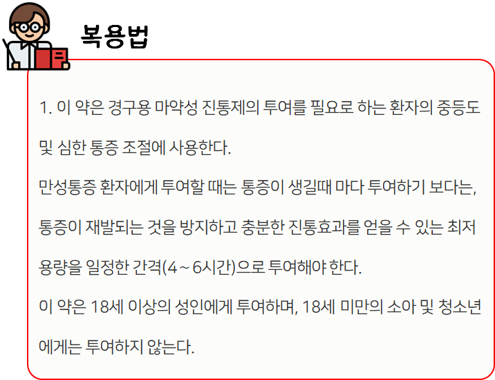 이 의약품은 중등도 및 심한 통증을 경감시키기 위해 사용하는 진통제이니 참고하시길 바랍니다.