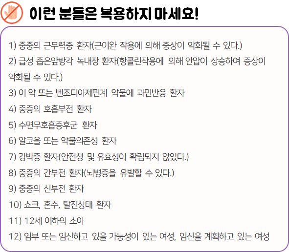 - 다음 환자는 복용 시 위험할 수 있으므로 복용하지 마시길 바랍니다.