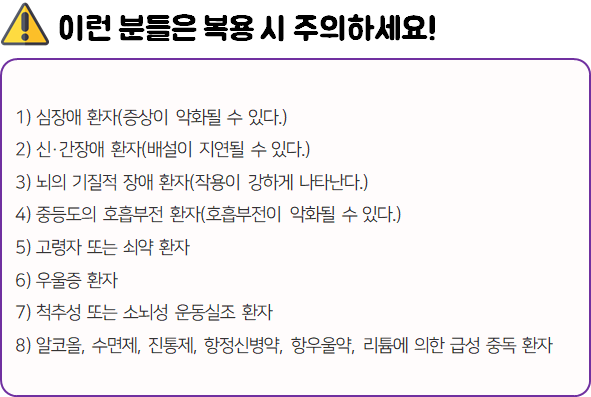 - 다음 환자는 복용 전 전문가 or 의사와 상담 후 복용하시길 바랍니다.
