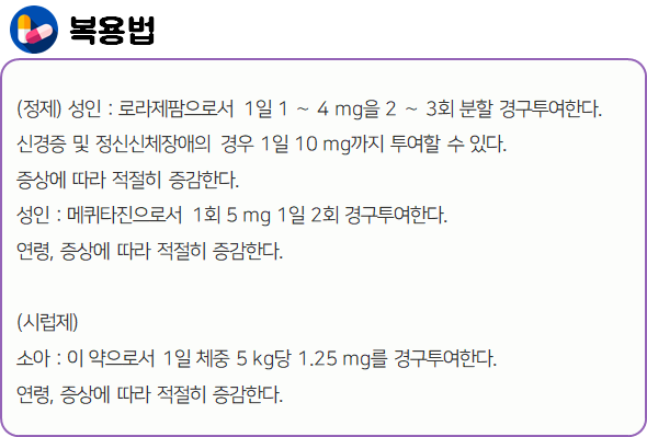 : Lorazepam : 정신/행동장애 > 항불안제 > Benzodiazepine계