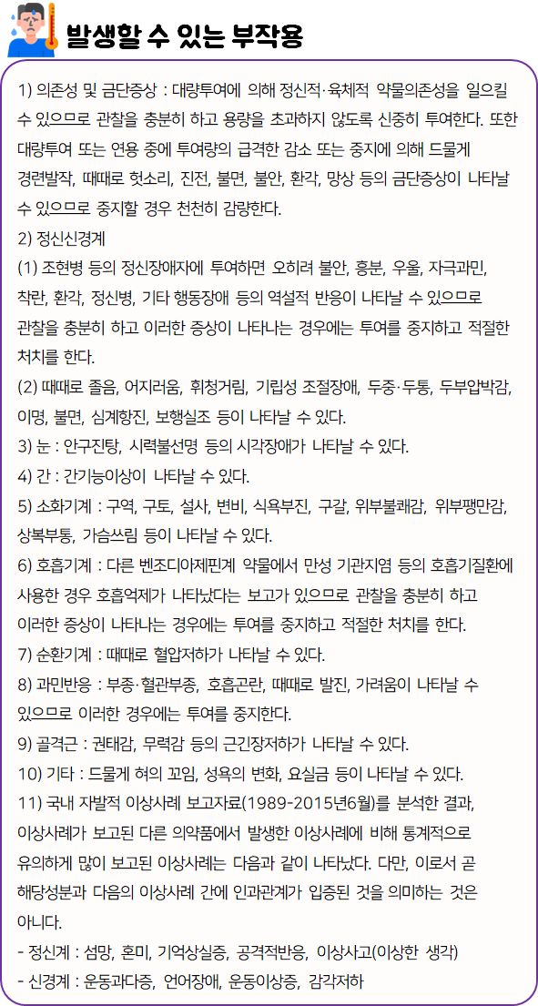 이 의약품은 '진정 및 안정 효과를 나타냄으로써 각종 불안장애를 개선하는 약'이니 참고하시길 바랍니다.