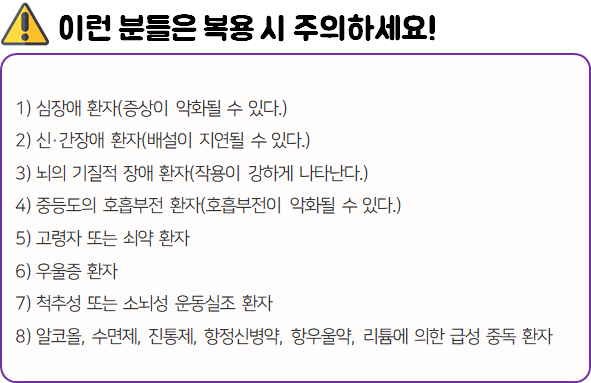 - 다음 환자는 사용 전 전문가 or 의사와 상담 후 복용하시길 바랍니다.