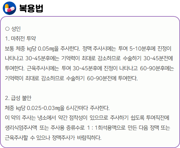 이 의약품은 진정 및 안정 효과를 나타냄으로써 각종 불안장애를 개선하는 무색투명한 액체가 든 갈색앰플의 주사제이니 참고하시길 바랍니다.
