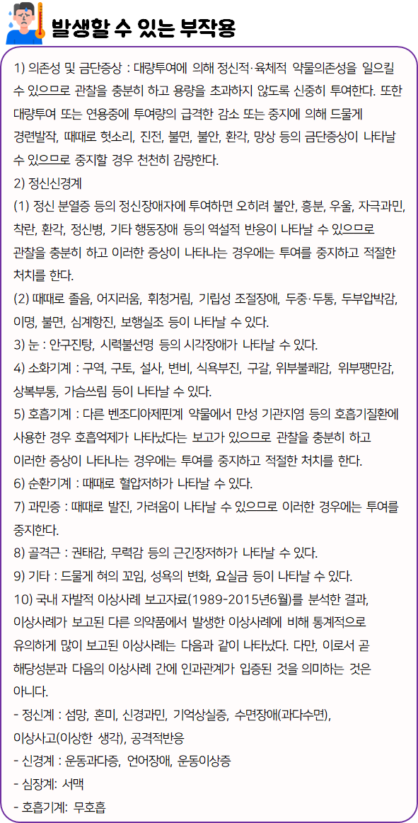 아티반주사(0.5m L)을(를) 사용할 시 다음과 같은 부작용이 발생할 수 있으니 주의하시길 바랍니다.