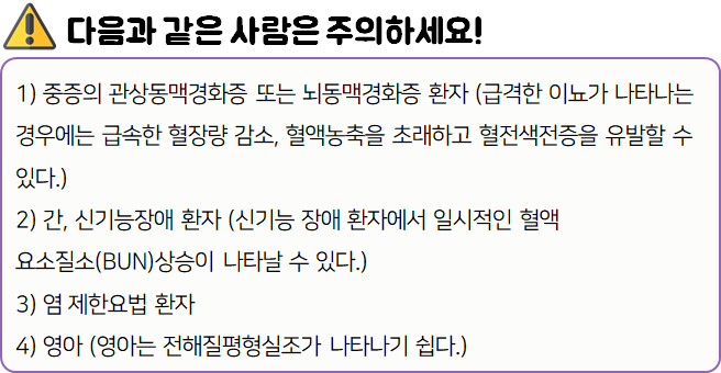 - 다음과 같은 사람은 복용 시 위험할 수 있으므로 복용하지 마시길 바랍니다.