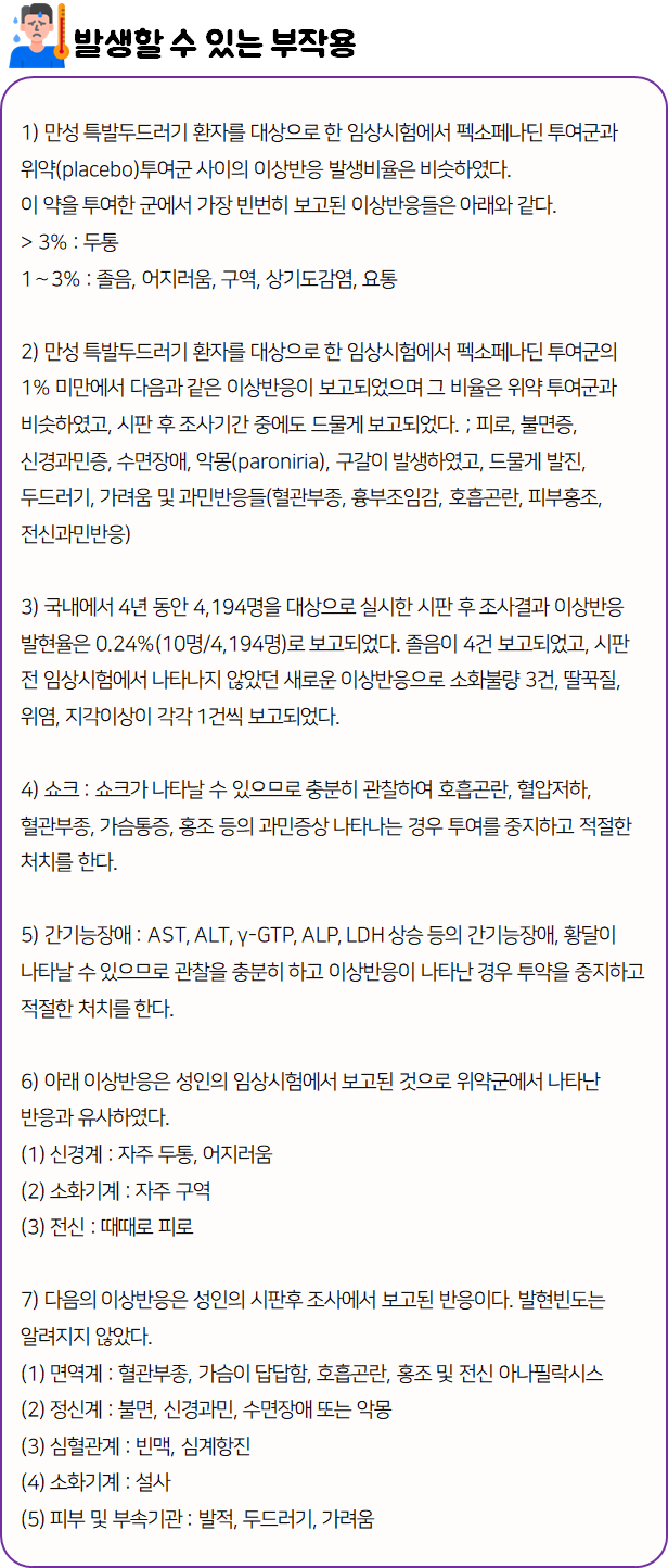 알레그라정을(를) 복용할 시 다음과 같은 부작용이 발생할 수 있으니 주의하시길 바랍니다.