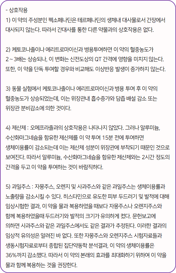 알레그라정 효과 및 효능은 다음과 같습니다.