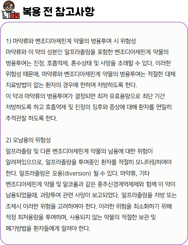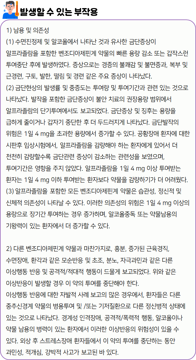 : Alprazolam : 정신/행동장애 > 항불안제 > Benzodiazepine계