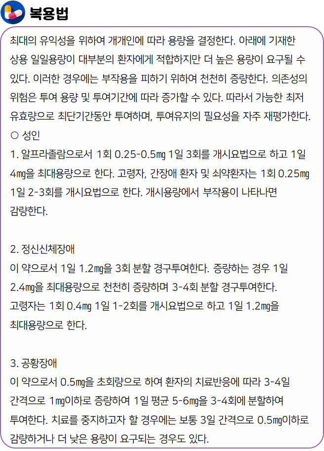 : Alprazolam : 정신/행동장애 > 항불안제 > Benzodiazepine계