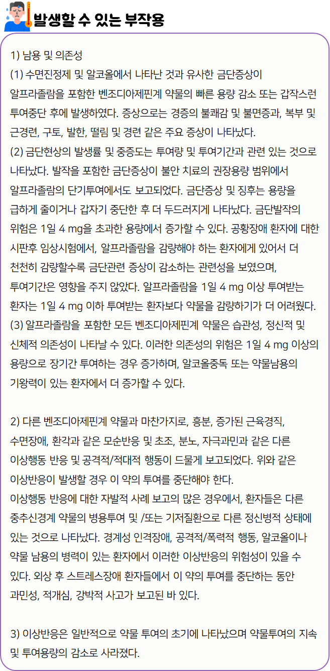 : Alprazolam : 정신/행동장애 > 항불안제 > Benzodiazepine계