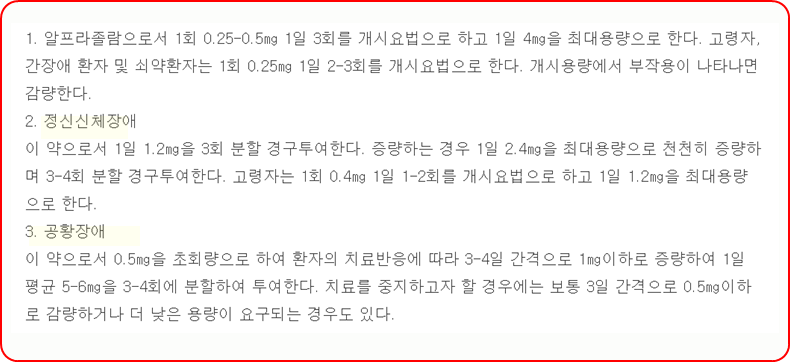 지금까지 알프람정 0.25mg에 대한 정보를 알려드렸는데요, 의약품은 드시기 전에 반드시 주의사항이나 부작용 등을 미리 체크하시길 바랍니다. 또한 복용 중 이상 반응이 나타나면 즉시 복용을 멈추고, 전문가나 의사와 상담하셔서 복용량을 줄이거나 복용을 멈추시는 것이 좋습니다.