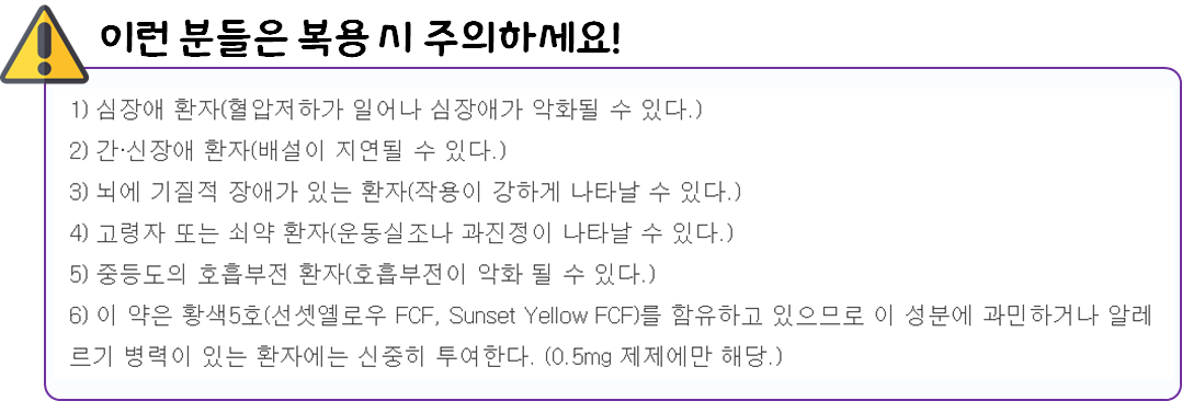 - 다음 환자는 복용 전 전문가 or 의사와 상담 후 복용하시길 바랍니다.