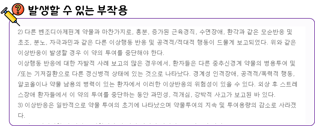 이 의약품은 진정 및 안정 효과를 나타냄으로써 각종 불안장애를 개선하는 약이니 참고하시길 바랍니다.
