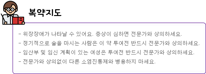 의약품에 대한 효과·효능부터 복용법, 부작용, 복용시 주의사항에 대한 모든 정보를 포함하고 있으니 끝까지 꼼꼼하게 읽으셔서 안전하게 복용하는데 도움 받으시길 바랍니다.