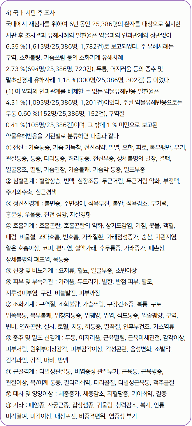 - 이 약을(를) 복용할 시 다음과 같은 부작용이 발생할 수 있으니 주의하시길 바랍니다.