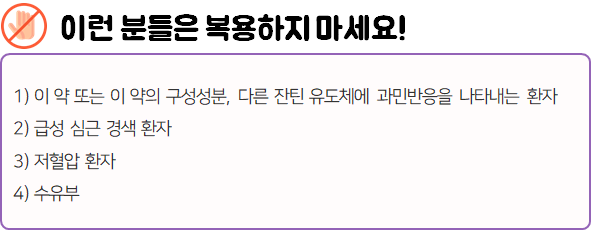 - 다음 환자는 복용시 위험할 수 있으므로 복용하지 마시길 바랍니다.