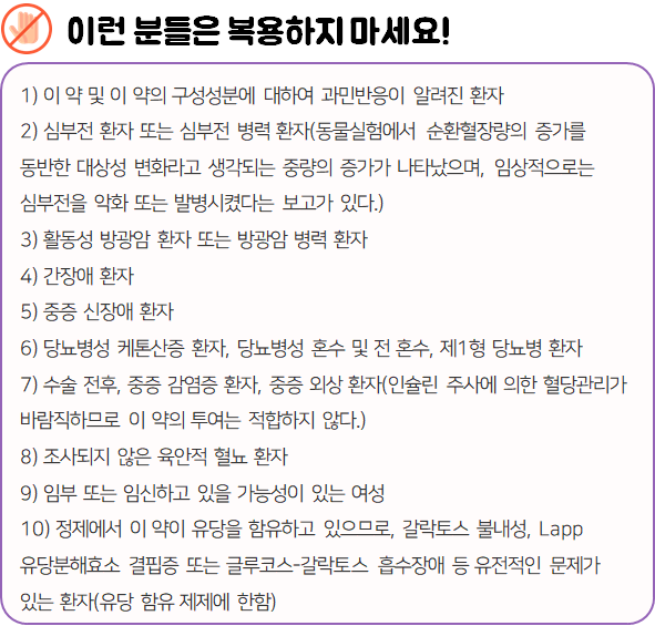 - 다음 환자는 복용 시 위험할 수 있으므로 복용하지 마시길 바랍니다.