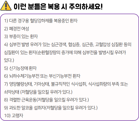 - 다음 환자는 복용 전 전문가 or 의사와 상담 후 복용하시길 바랍니다.