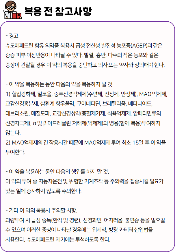 이 의약품은 콧속 혈관을 수축하고, 항알러지 작용을 나타내어 비염 증상을 개선하는 약이니 참고하시길 바랍니다.