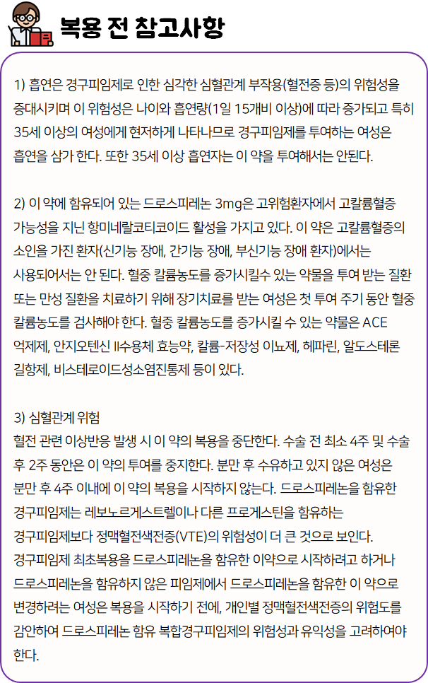 이 글은 야스민의 효과·효능부터 복용법, 부작용, 복용 시 주의사항, 복약지도에 관한 모든 정보를 담고 있으니 끝까지 읽어보시고 안전하게 복용하시는데 도움 받으시길 바랍니다.