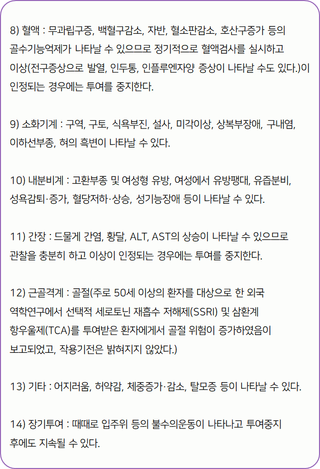 - 이 약을(를) 복용할 시 다음과 같은 부작용이 발생할 수 있으니 주의하시기 바랍니다.