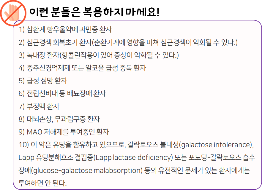 - 다음 환자는 복용 전 전문가 or 의사와 상담 후 복용하시길 바랍니다.