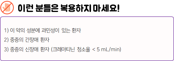 - 다음 환자는 복용 시 위험할 수 있으므로 복용하지 마시길 바랍니다.