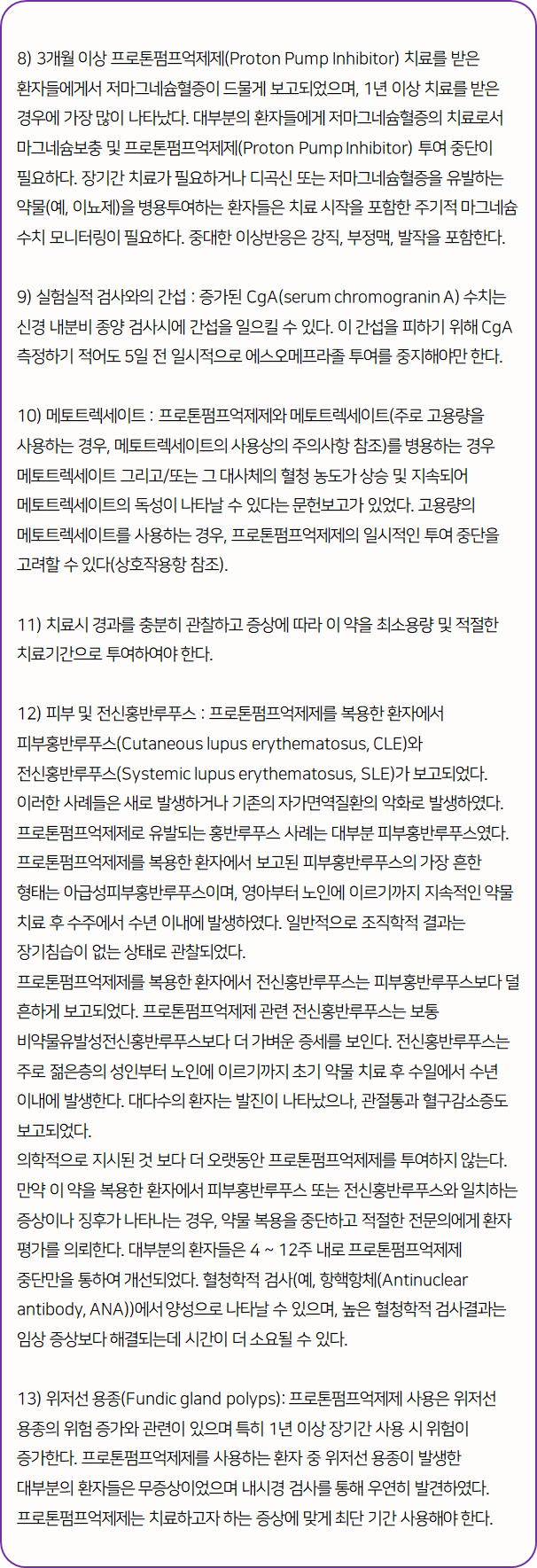 지금까지 에소메졸 캡슐에 대한 정보를 알려드렸는데요, 의약품은 드시기 전에 반드시 주의사항이나 부작용 등을 미리 체크하시길 바랍니다.