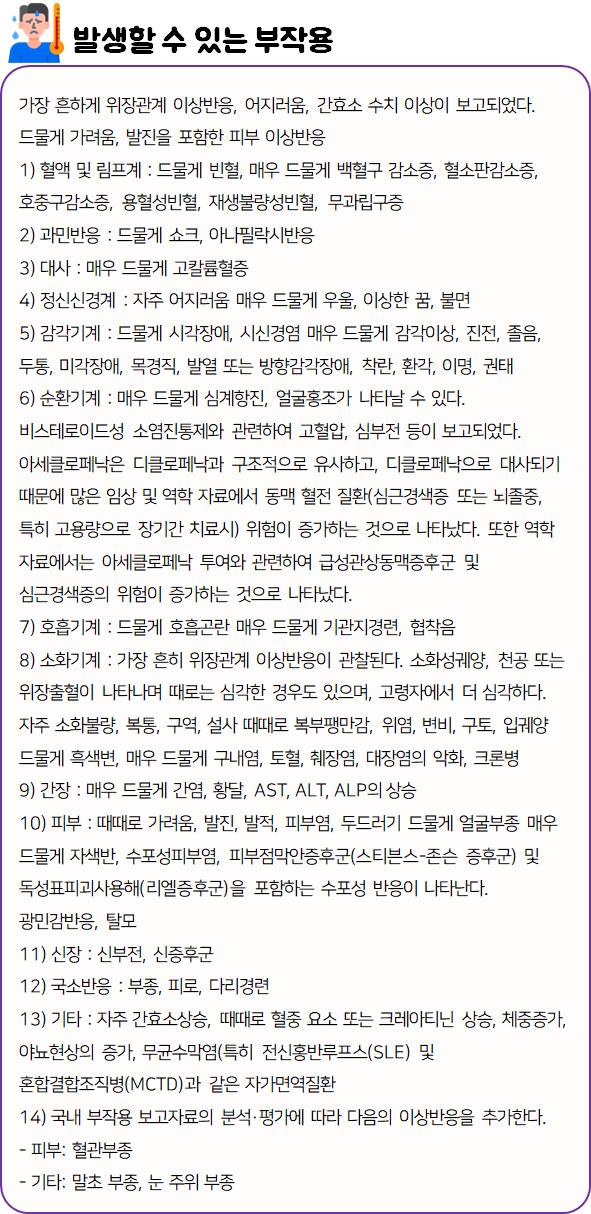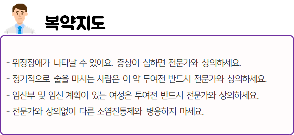 의약품은 반드시 복용 전에 복용 시 발생할 수 있는 부작용이나 주의사항 등을 미리 확인하신 후 드셔야 안전하게 먹을 수 있습니다.