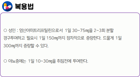 이 의약품은 중추에 작용하여 항우울 효과를 나타내며, 야뇨증 및 신경통 치료에도 사용하는 약이니 참고하시길 바랍니다.