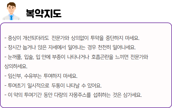의약품은 반드시 복용 전에 복용 시 발생할 수 있는 부작용이나 주의사항 등을 미리 확인하신 후 드시기 바랍니다.