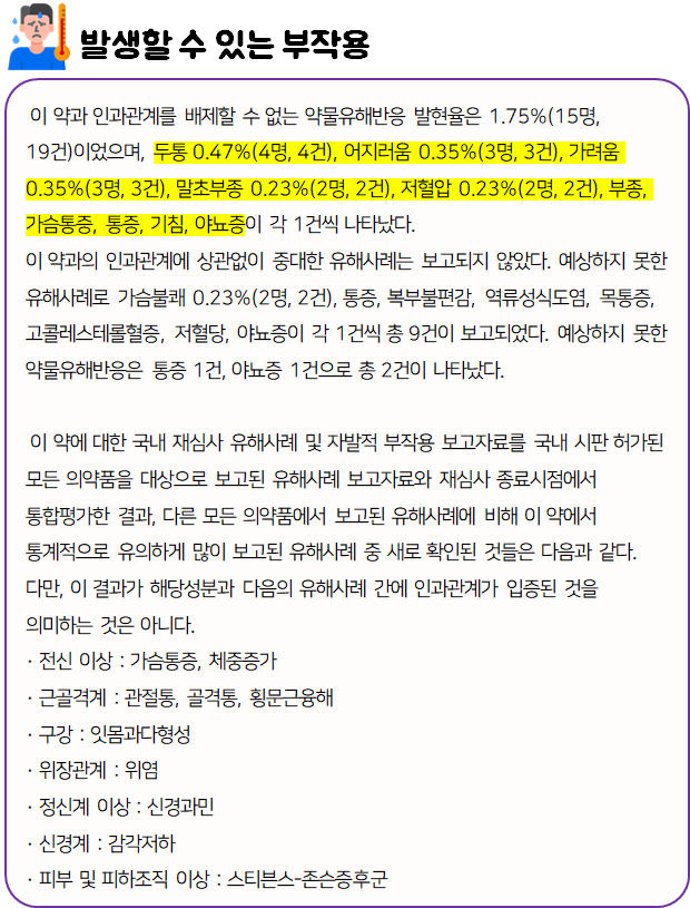 엑스포지정을(를) 복용할 시 다음과 같은 부작용이 발생할 수 있으니 주의하시길 바랍니다.