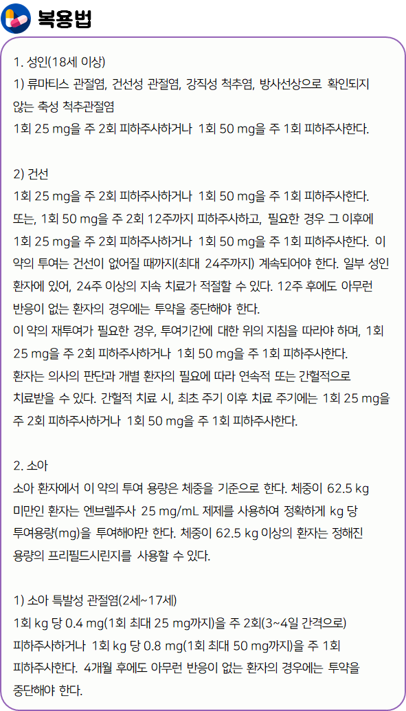 엔브렐 효과 및 효능은 다음과 같습니다.