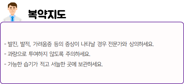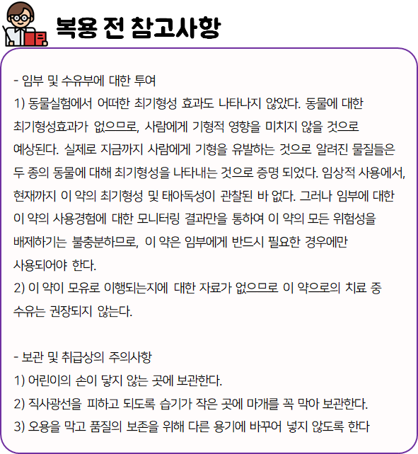 몸에 맞지 않는 의약품의 경우 크고 작은 이상 반응을 불러 일으킬 수 있으므로 드시기 전에 반드시 부작용이나 주의사항 등을 미리 확인하시길 바랍니다.