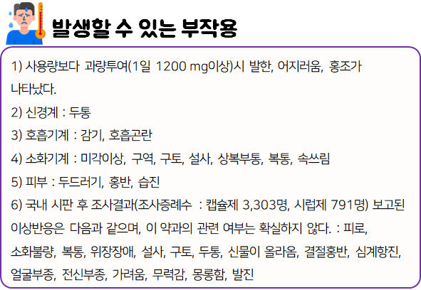 몸에 맞지 않는 의약품의 경우 크고 작은 이상 반응을 불러일으킬 수 있으므로 드시기 전에 반드시 부작용이나 주의사항 등을 미리 확인하시길 바랍니다.