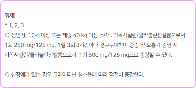○ 단, 치과 감염 시는 1회 250 mg, 1일 3회 5일간 투여하도록 합니다.