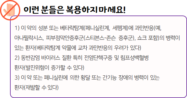 - 다음 환자는 복용 시 위험할 수 있으므로 복용하지 마시길 바랍니다.