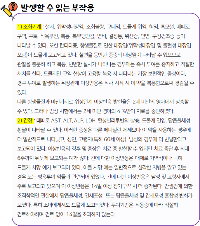 오멘정375mg을(를) 복용할 시 다음과 같은 부작용이 발생할 수 있으니 주의하시길 바랍니다.
