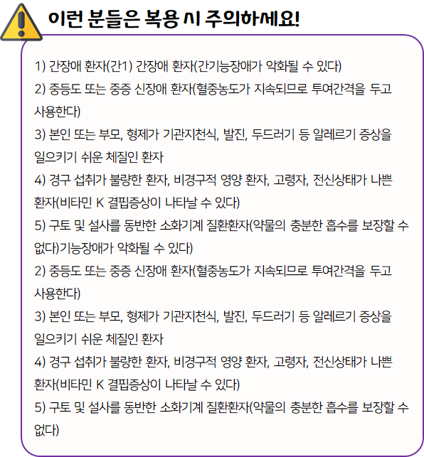 - 다음 환자는 복용 전 전문가 or 의사와 상담 후 복용하시길 바랍니다.