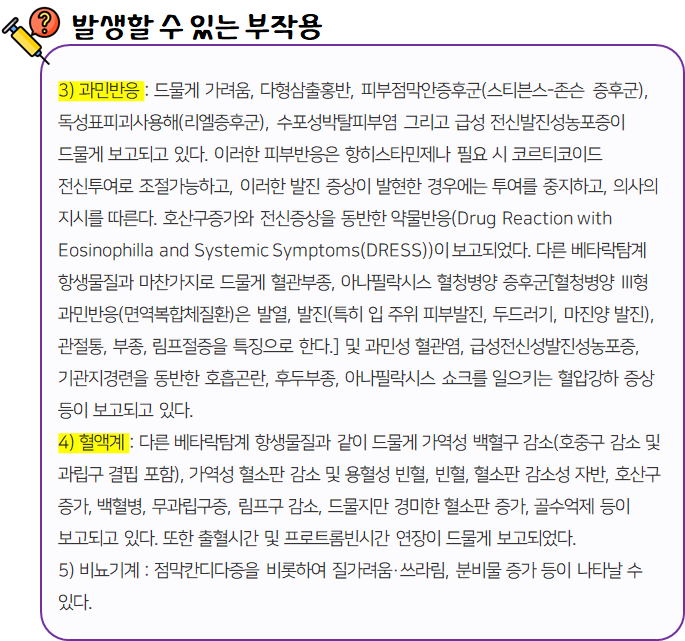 이 의약품은 항균작용을 나타냄으로써 세균에 의한 각종 감염증을 치료하는 약이니 참고하시길 바랍니다.