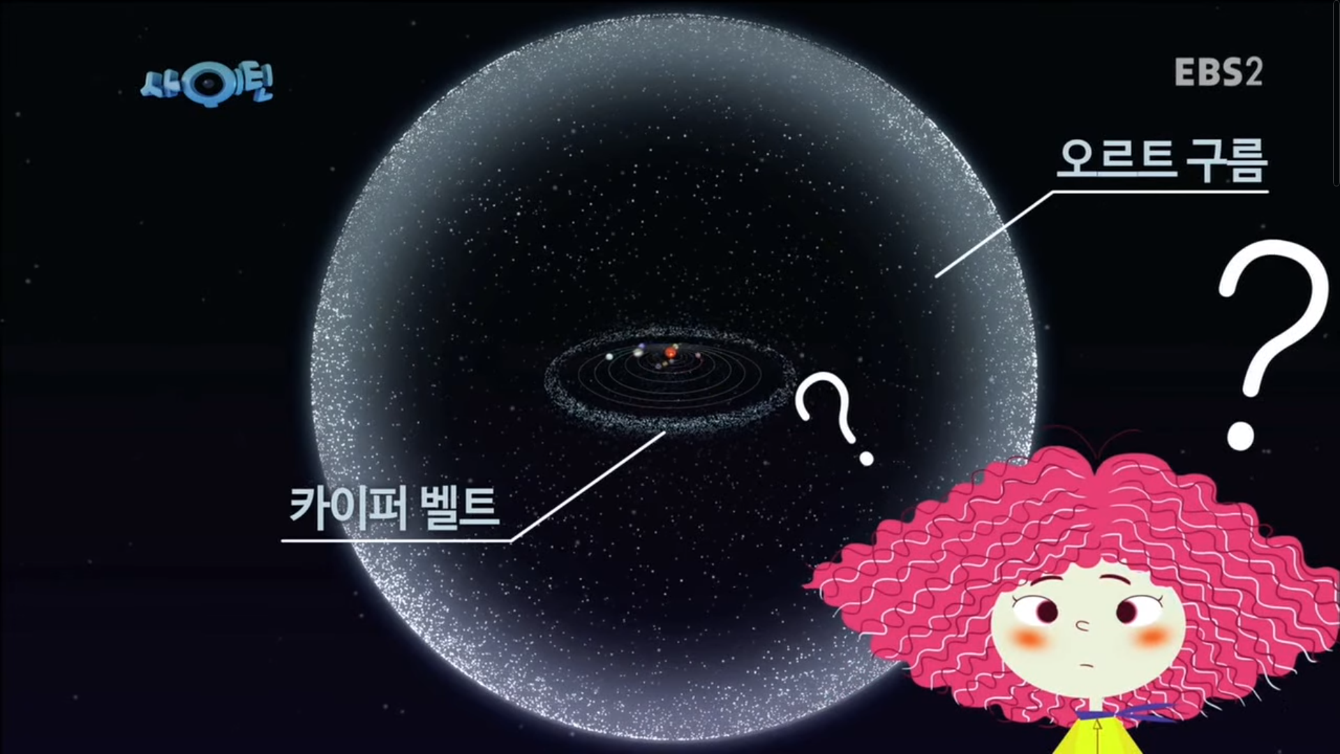 이 천체들은 태양계의 행성들이 만들어질 당시 행성으로 포함되지 못하고 남은 것으로 추정되고 있습니다. 다음 오르트구름은 네덜란드의 천문학자인 오르트가 혜성의 근원지라고 주장한 영역입니다. 오르트구름은 태양계의 가장 바깥 쪽 영역으로 둥근 공 모양을 하고 있습니다. 이런 오르트구름은 태양으로부터 몇 만 Au나 떨어져 있다고 합니다.