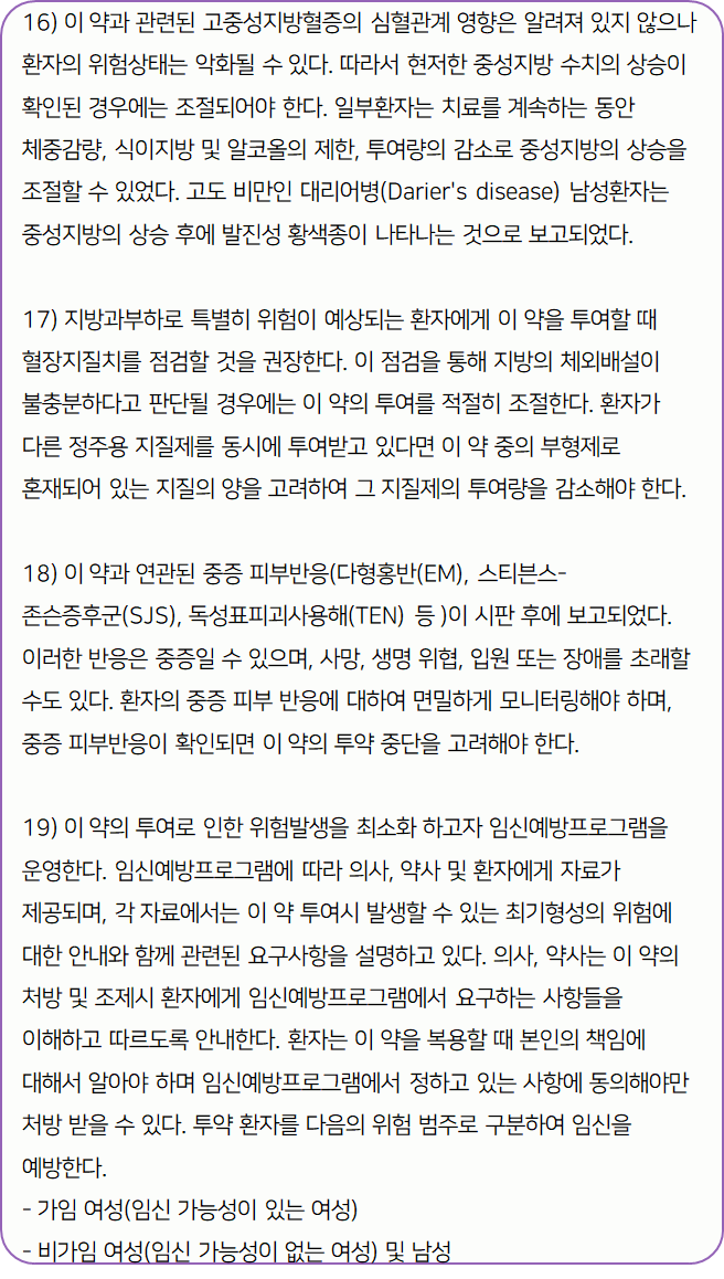 이 의약품은 피부 각질층을 얇게하고 피지선의 활성을 억제하여 여드름을 치료하는 약이니 참고하시길 바랍니다.