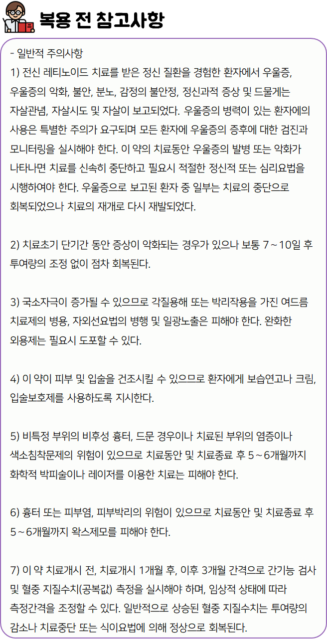 : Isotretinoin : 피부/피하조직질환 > 여드름 치료 > 비타민A 제제